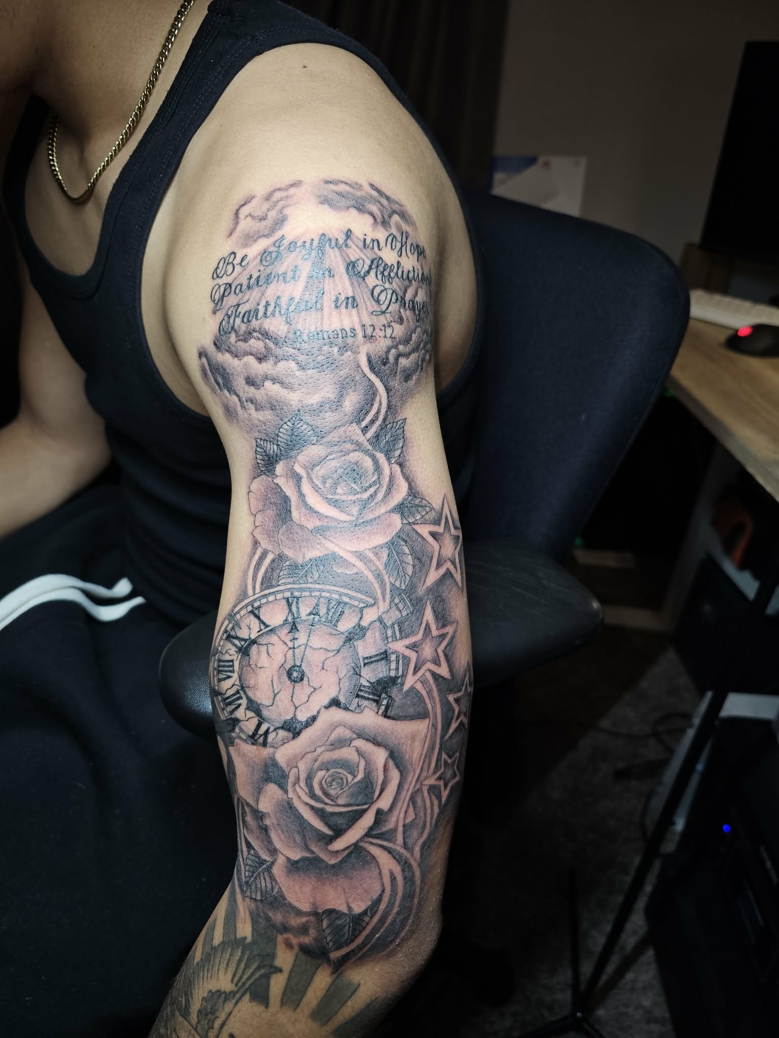 I’ve been tattooing for over 18 years, and every piece still excites me like the first. My passion lives in realism and bold color, where detail, depth, and emotion come to life. I love taking scattered ideas, stories, and visions and bringing them together into one powerful design. There’s nothing better than sketching something custom and watching it evolve from paper to skin. That moment when a client sees their idea fully realized is everything to me. Turning imagination into permanent art is what I do best.